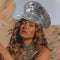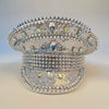 Command attention with our steampunk oversized captain’s hat, dripping in rhinestones for that perfect blend of edgy and glam. This statement piece is all about bold style, featuring intricate steampunk details and a dazzling array of rhinestones that catch the light from every angle. Whether you’re at a festival or a themed event, this hat will make sure you stand out in the crowd. Silver with sivler gemstones.
